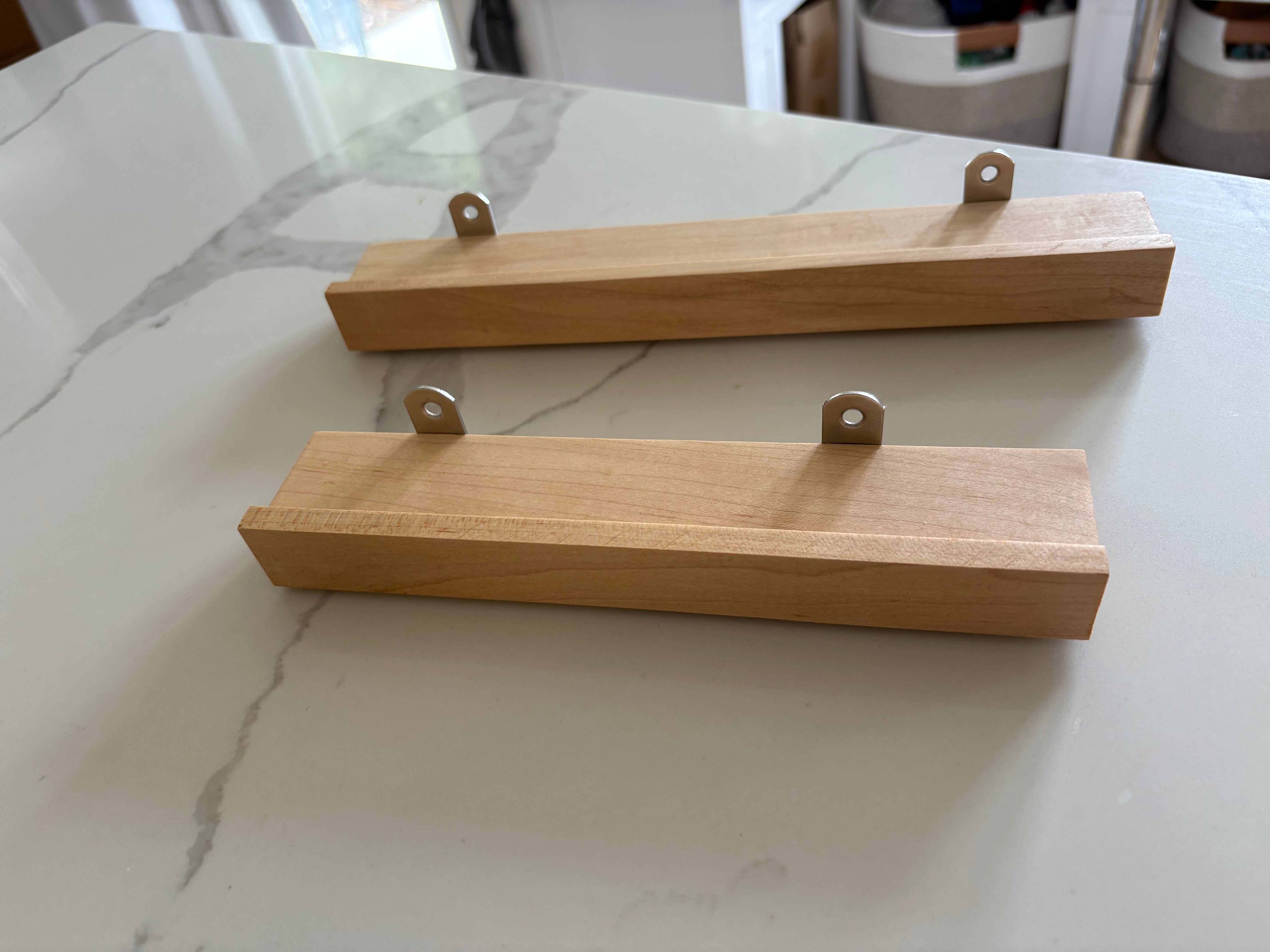Multiple species of wood are available, with varying sizes. All ledges come with brackets installed for easy hanging. Simply screw into wall and begin arranging your photos!