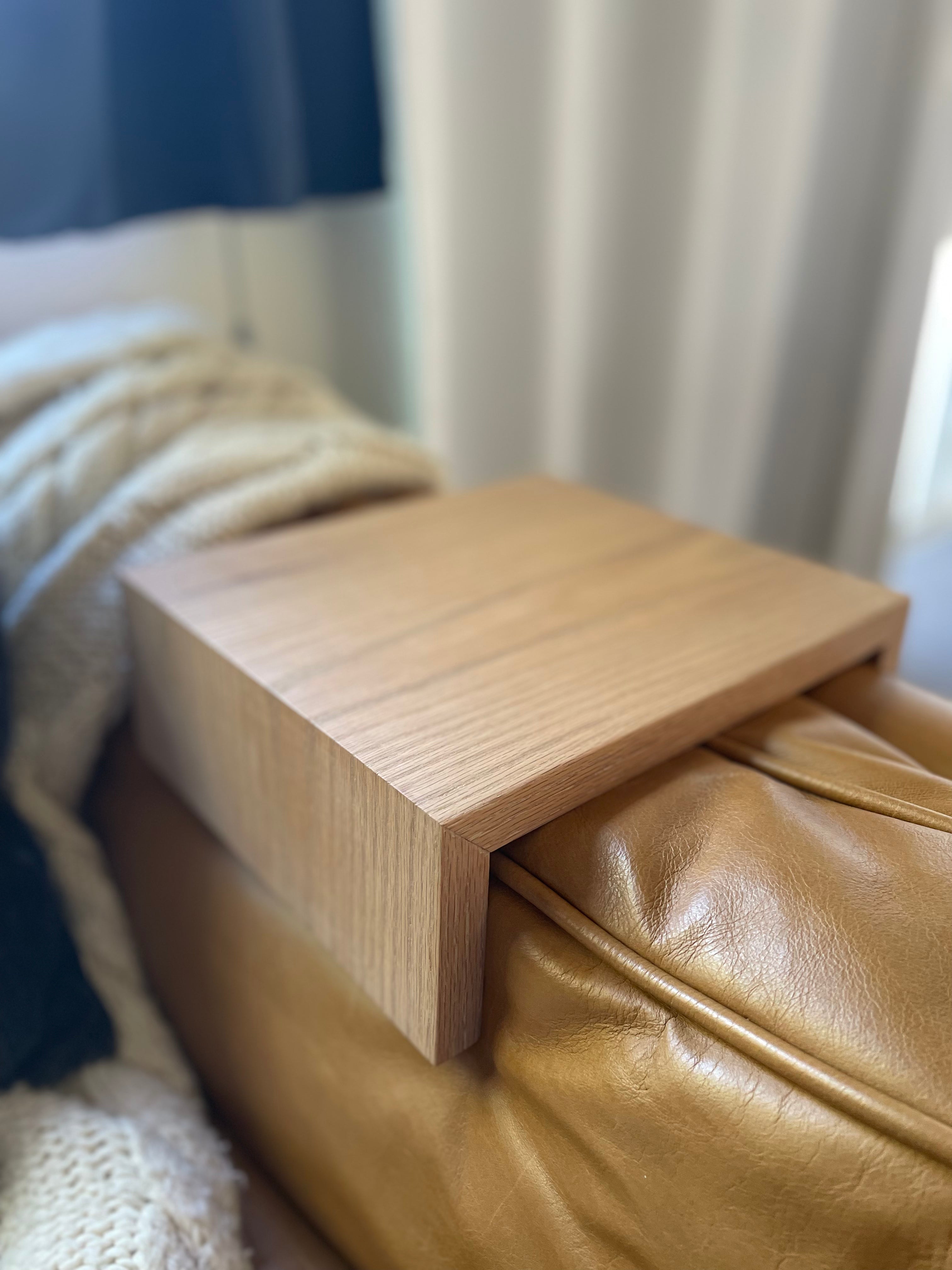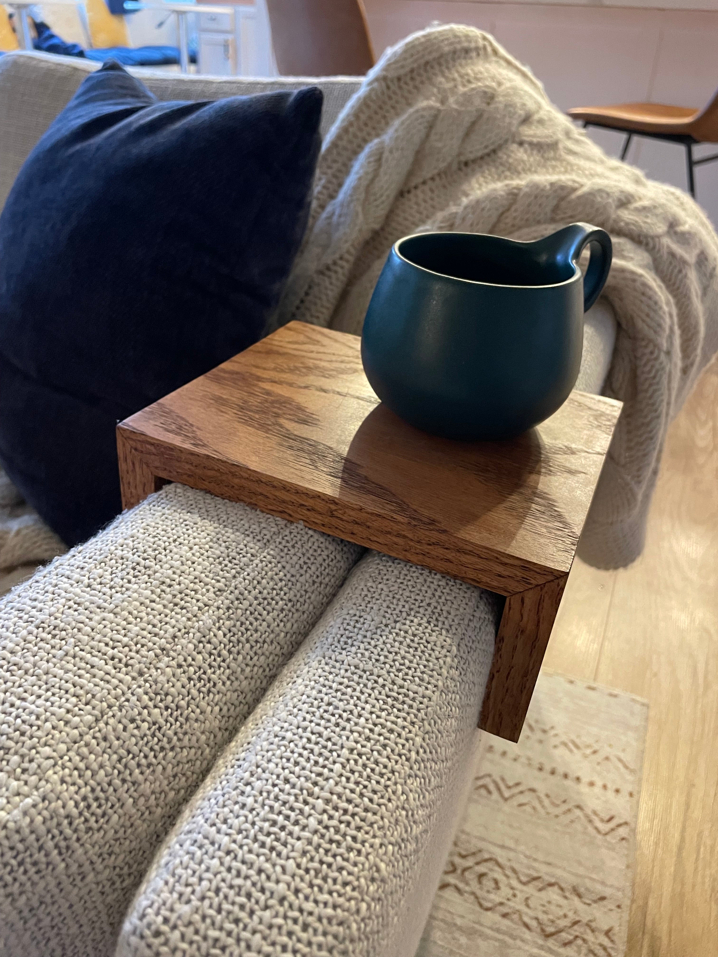 A perfect accessory for any couch, this cushion table provides a stable surface for mugs, glasses, or any item you may need within arms' reach while reclining on the sofa. Easily remove, clean, or use on your lap as a portable table.