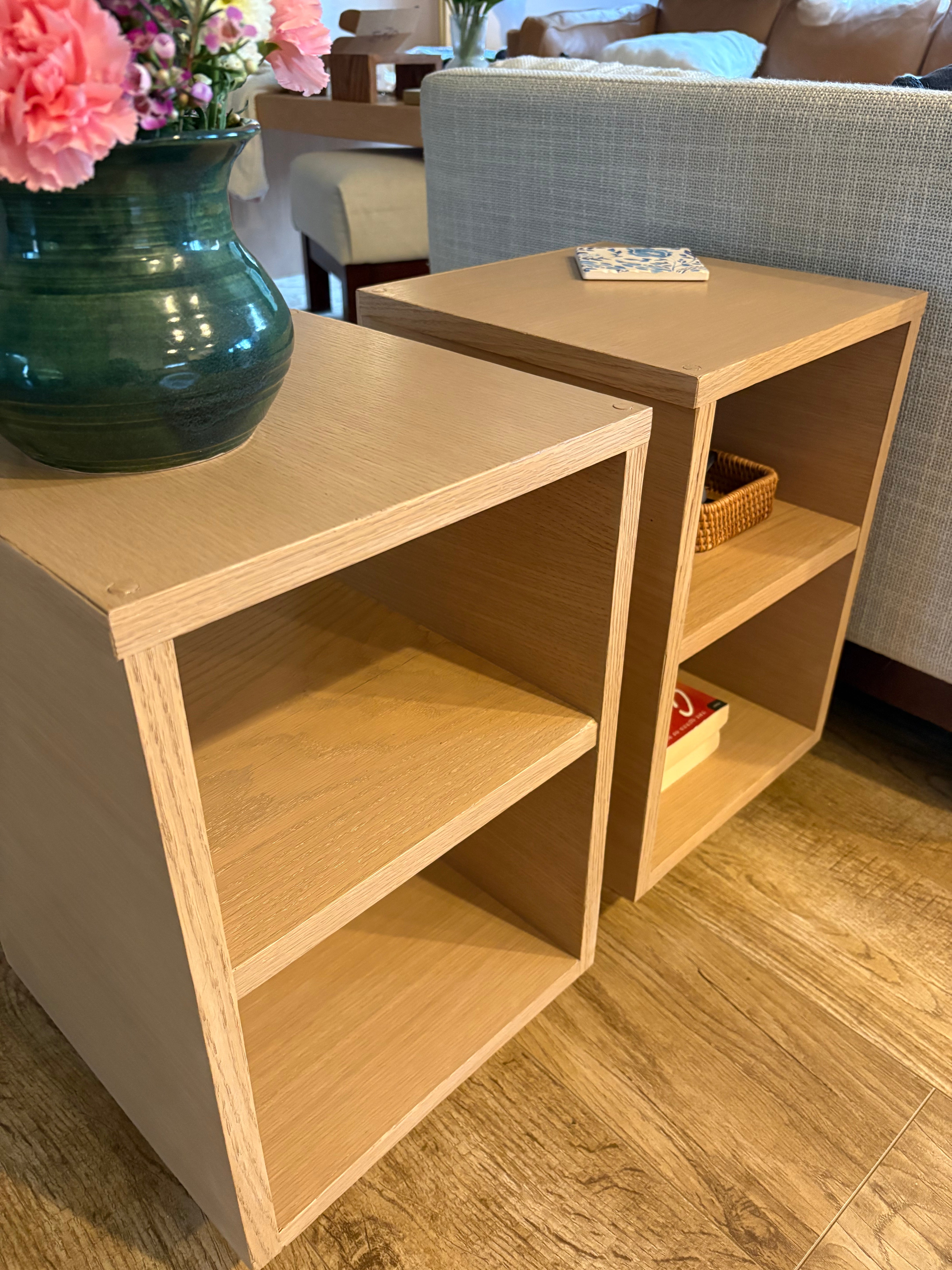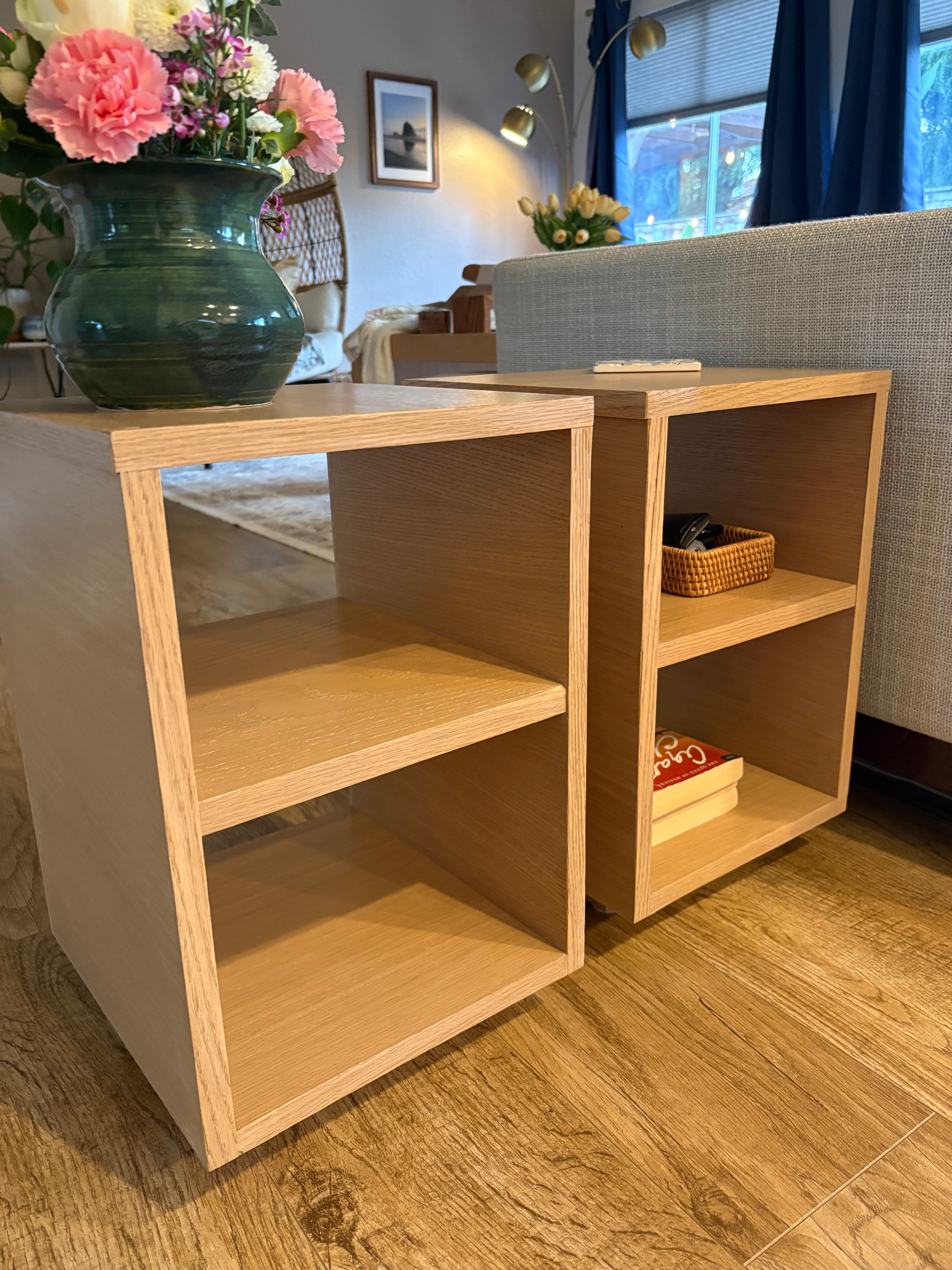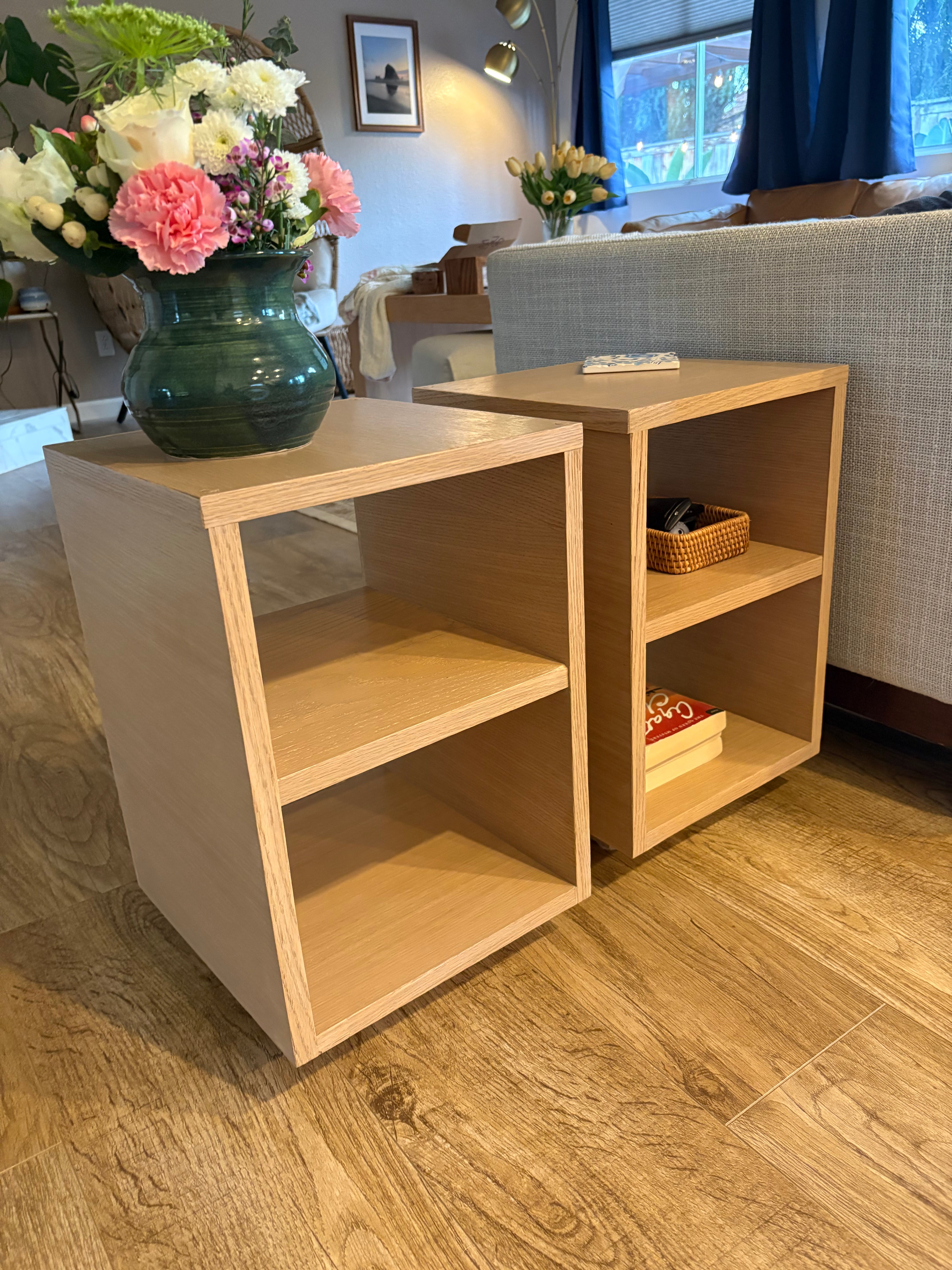Built from white oak hardwood and high quality rift sawn white oak ply. Neutral finish with multiple layers of protective polyurethane. They were built to last-- in style.