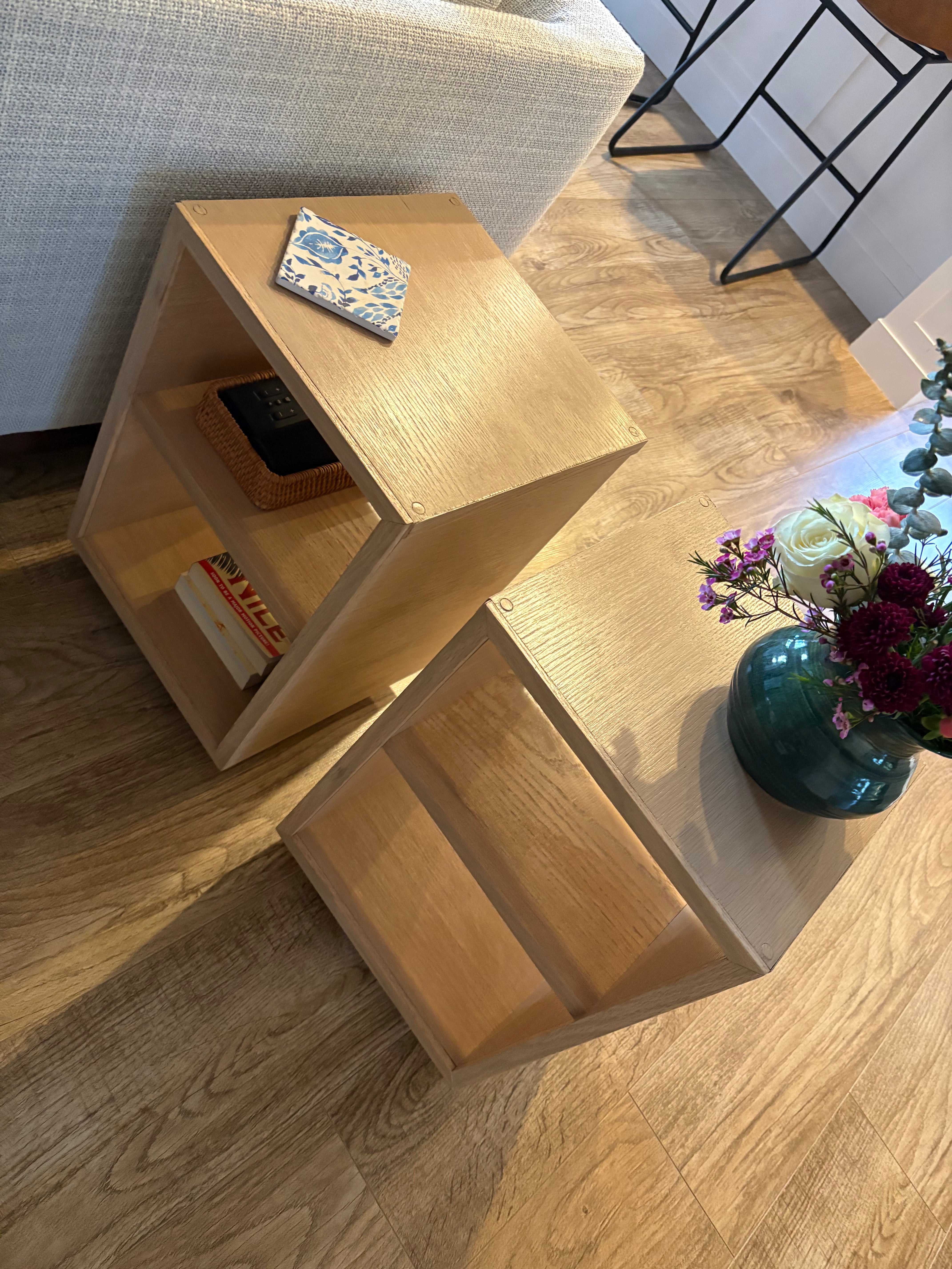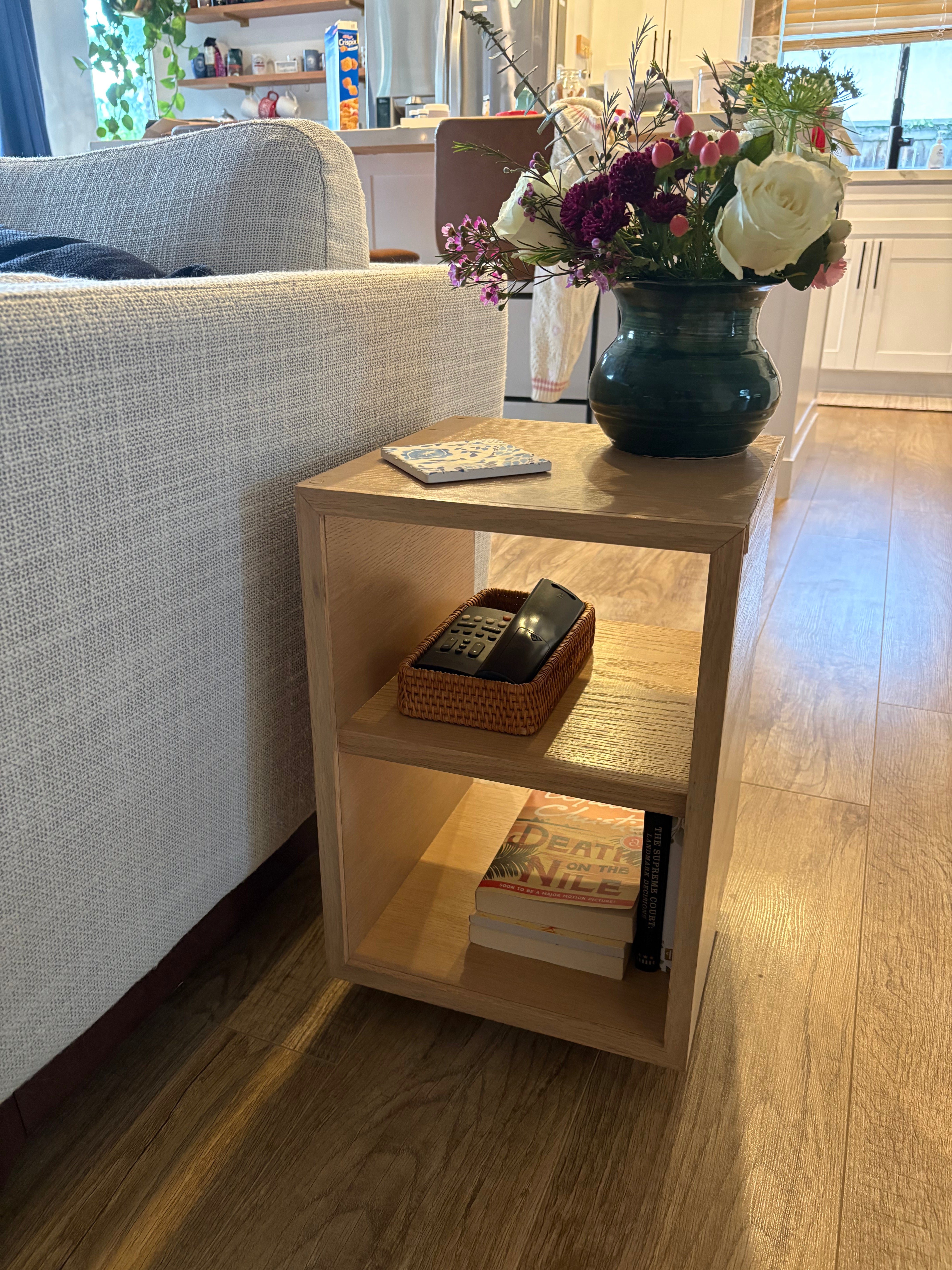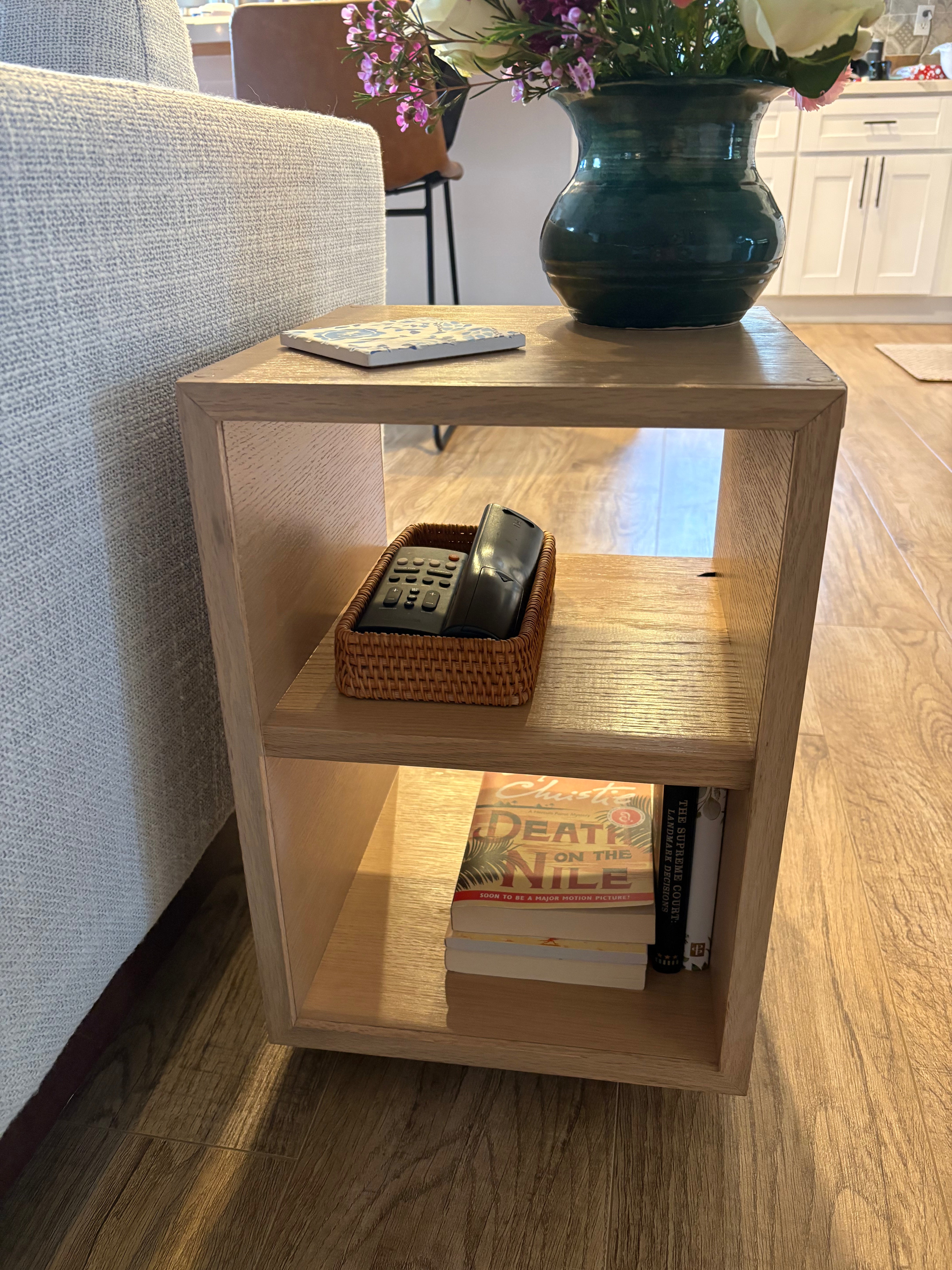 Built from white oak hardwood and high quality rift sawn white oak ply. Neutral finish with multiple layers of protective polyurethane. They were built to last-- in style.